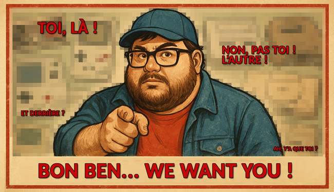 Tu penses correspondre à la description? Alors envoie-nous un article de ton choix dans le plus pur style GameTrip (lis les tests), un petit mot qui résume ce que tu fais dans la vie, où t'habites, ce que t'aimes manger, si t'as déjà écrit sur des sites, les consoles que t'as à ta maison et pourquoi tu penses être le nouveau Lord Casque Noir. Si tu as des belles formes, ajoute une photo à l'attention du patron.