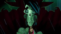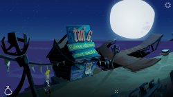 Puis, Escape from Monkey Island tentera la 3D pour la première fois en 2000. Vous connaissez la suite: Tales of Monkey Island de Telltale, et des remasters dans tous les sens, comme partout dans une industrie en panne de créativité, frileuse à l’idée de prendre les risques que l’on se permettait dans les 80’s. Oui mais voilà, dans sa tête, Ron Gilbert, parti fonder Humongous et Cavedog, estime que la boucle n’est pas bouclée. À la fin du deuxième épisode, Guybrush découvre que ses aventures ne sont que dans son imaginaire. Il s’amuse à jouer aux pirates avec son frère Chuckie, campant le terrible pirate LeChuck, dans un parc d’attraction. Tout est donc faux… Vraiment? Durant les dernières frames du jeu, les yeux rouges de son petit frère s’illuminent comme ceux du pirate fantôme.