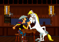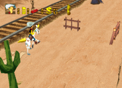 Et boum!Basés à Lyon, les développeurs se donnent comme objectif de retranscrire le plus fidèlement possible l’univers de la bande dessinée et souhaitent proposer un jeu différent de l’adaptation 16 bits sortie en 1997. Ils collaborent avec le créateur de Lucky Luke, Morris, ainsi que son équipe de dessinateurs. Fort de leurs adaptations réussies des Schtroumpfs et d’Astérix, les gars d’Infogrames se montrent donc confiants. Ils se documentent sur l’univers du Far West en plus de celui de la BD et, nouvelle génération de console oblige, envisagent de passer à la 3D 32 bits. Au final, ce ne sera qu’une 3D partielle, les équipes ayant souhaité conserver l’esprit de la BD en y ajoutant quelques effets de profondeur. Lucky Luke s’inscrit donc dans la tradition des jeux de plate-formes avec de la modernité. C’est en tout cas ce qui est promis.