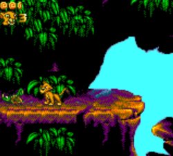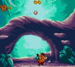 Bien que difficile, sûrement le meilleur niveau du jeu.Vous l’avez compris, la version Game Gear propose huit niveaux dont deux quasi identiques, simplement différenciés par la progression, du bas vers le haut pour le premier, et du haut vers le bas pour le second. Ceux-ci se révèlent heureusement plutôt variés et même assez exigeants, pour peu qu’on ne soit pas (ou plus) habitués à jouer sur Game Gear. Plateforme à l’ancienne oblige, les sauts doivent être précis, se font parfois à l’aveugle et certains passages manquent de précision. Simba est tout aussi capable de s'accrocher à un rebord de plateforme que de louper un singe ou un point de propulsion pour visible et ce, malgré un saut semble-t-il correct.